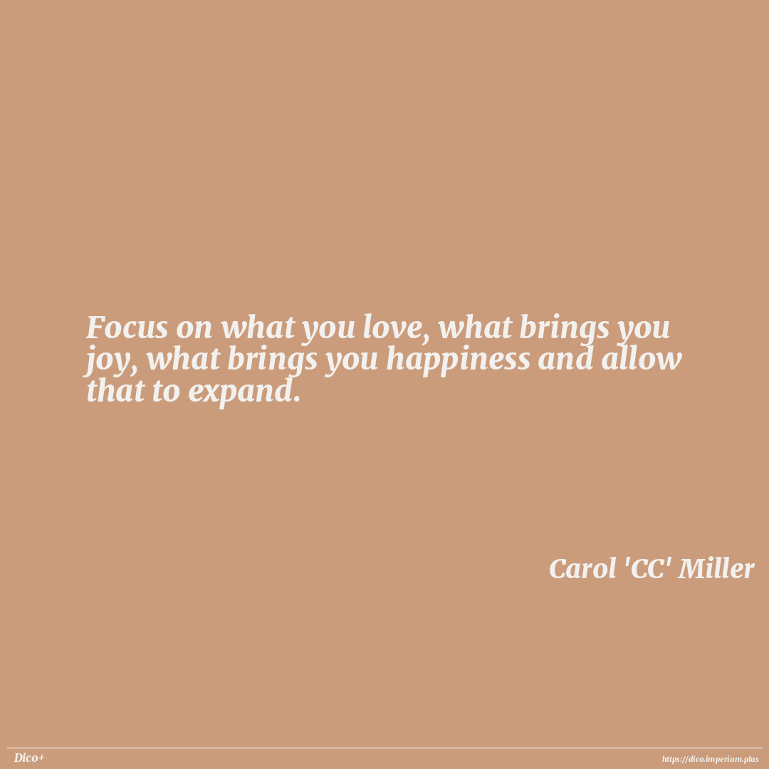 Focus on what you love, what brings you joy, what brings you happiness and allow that to expand.