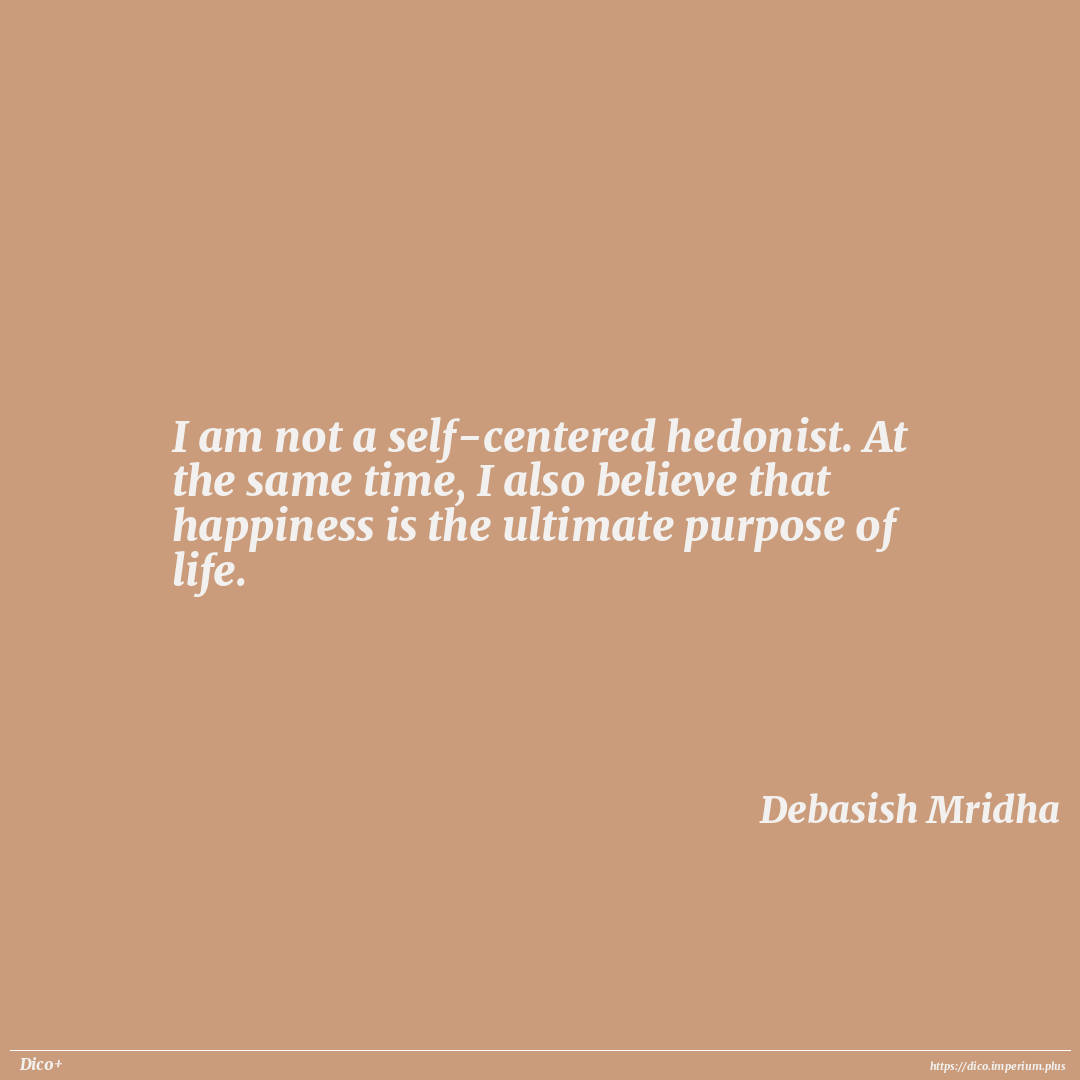 I am not a self-centered hedonist. At the same time, I also believe that happiness is the ultimate purpose of life.