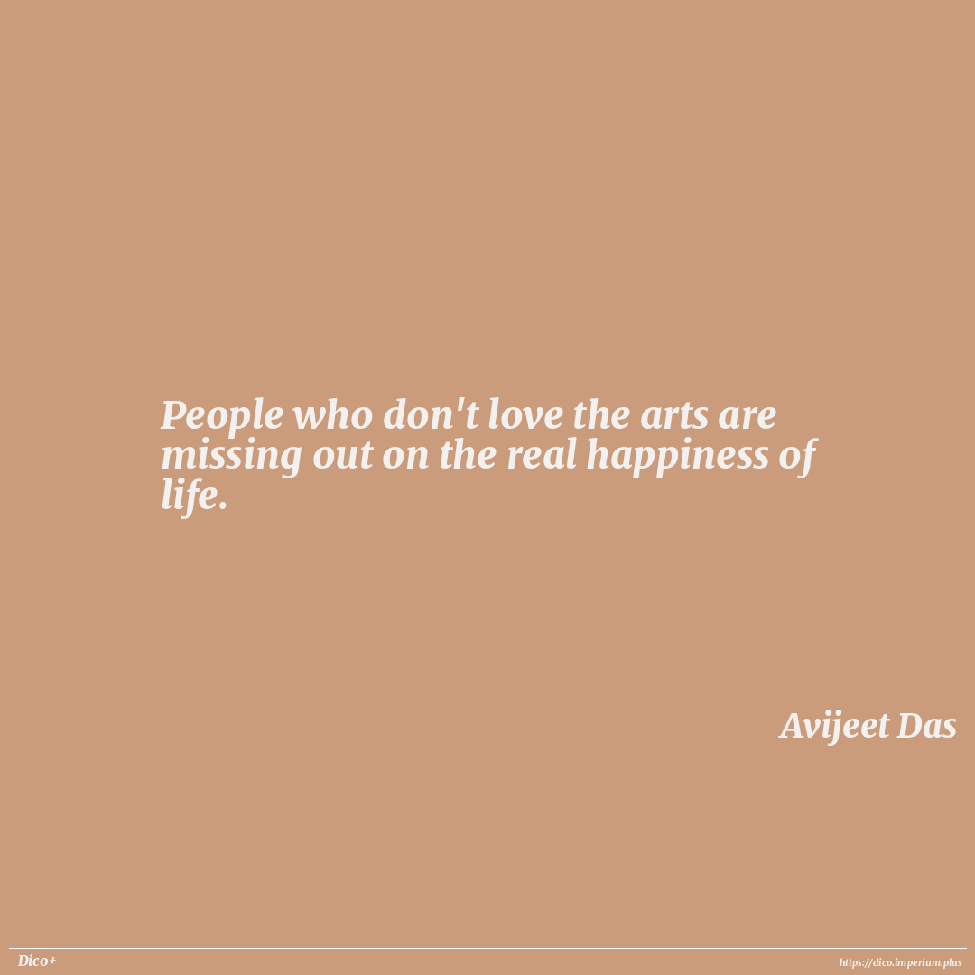 People who don't love the arts are missing out on the real happiness of life.