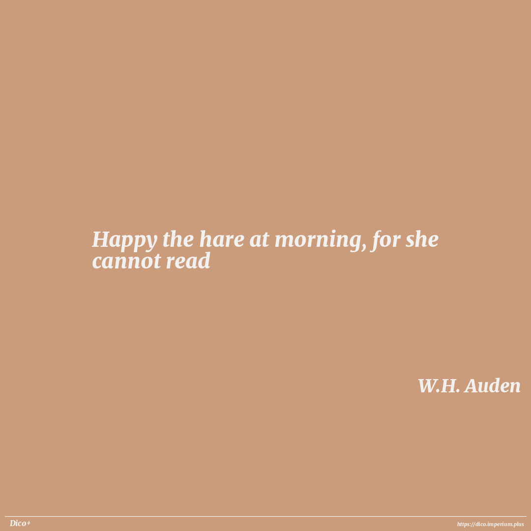 Happy the hare at morning, for she cannot read