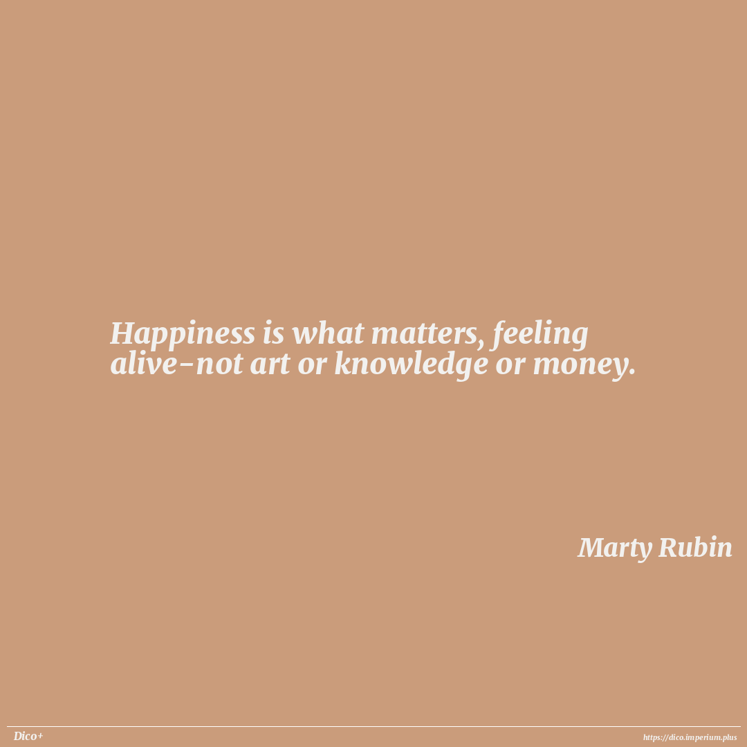 Happiness is what matters, feeling alive-not art or knowledge or money.