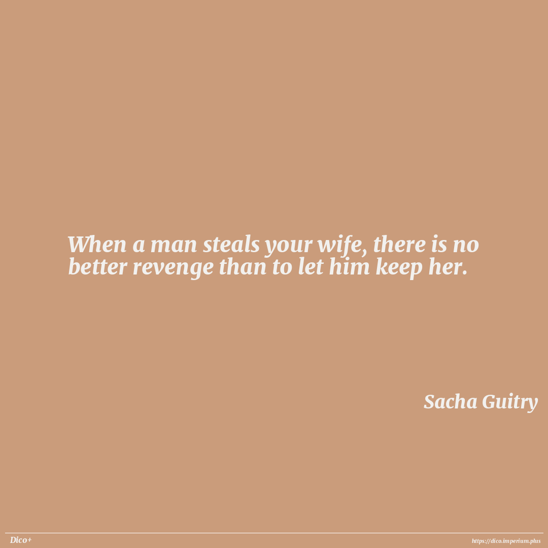 When a man steals your wife, there is no better revenge than to let him keep her.