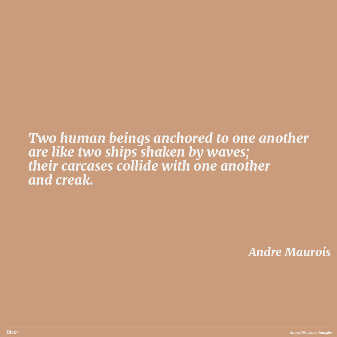 Two human beings anchored to one another are like two ships shaken by waves; their carcases collide with one another and creak.