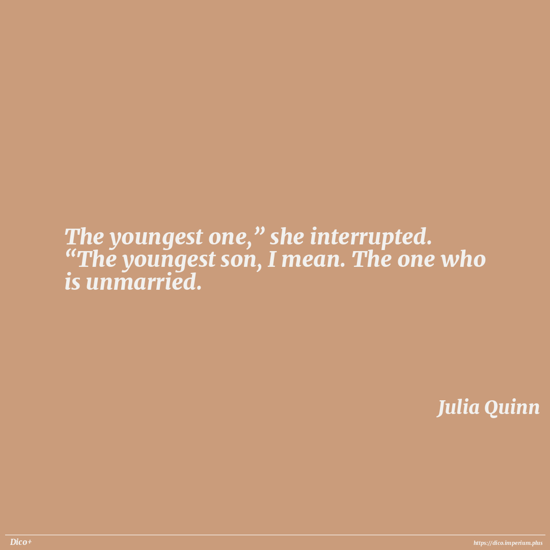 The youngest one,” she interrupted. “The youngest son, I mean. The one who is unmarried.