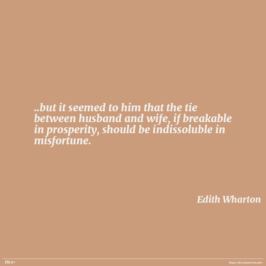 ..but it seemed to him that the tie between husband and wife, if breakable in prosperity, should be indissoluble in misfortune.