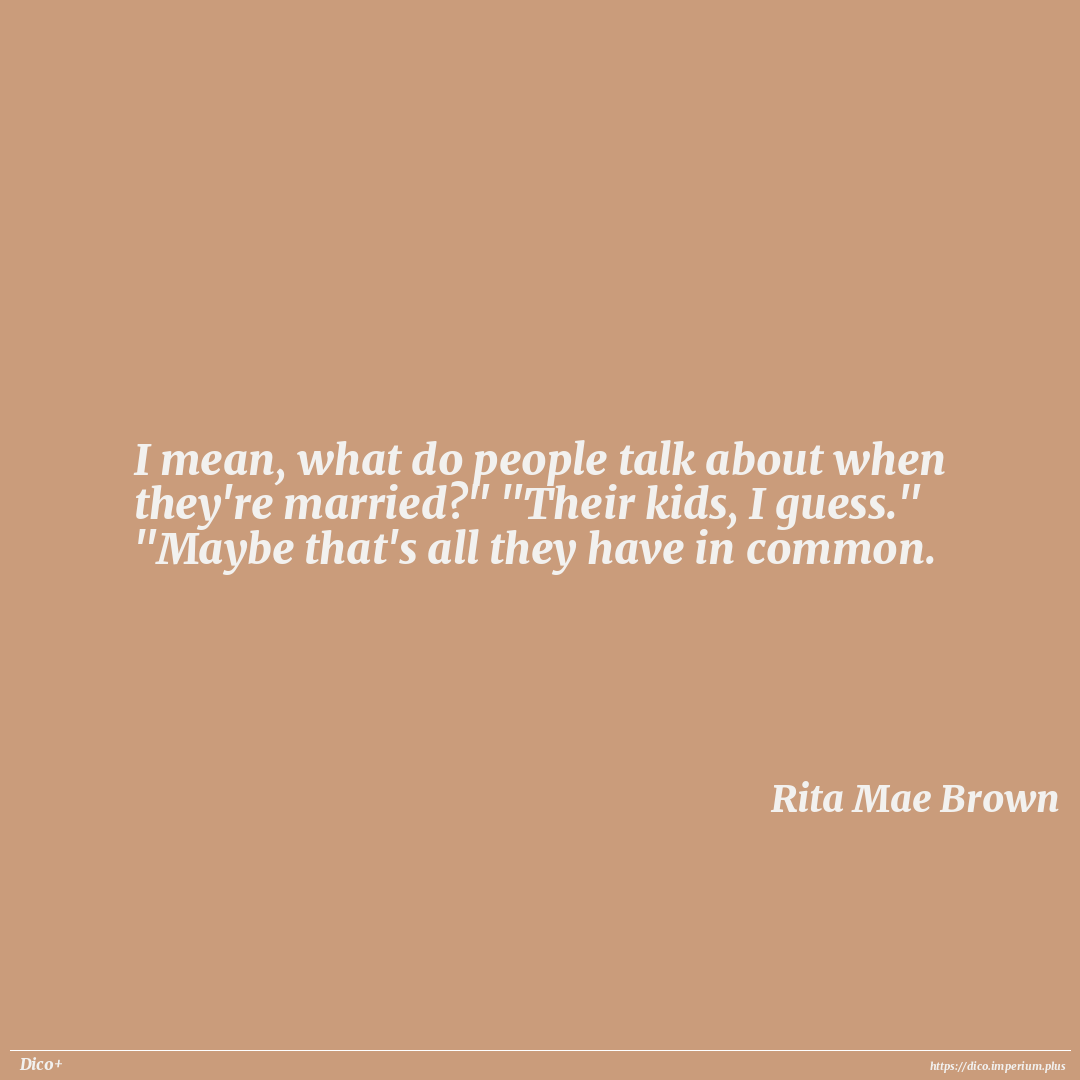 I mean, what do people talk about when they're married?" "Their kids, I guess." "Maybe that's all they have in common.