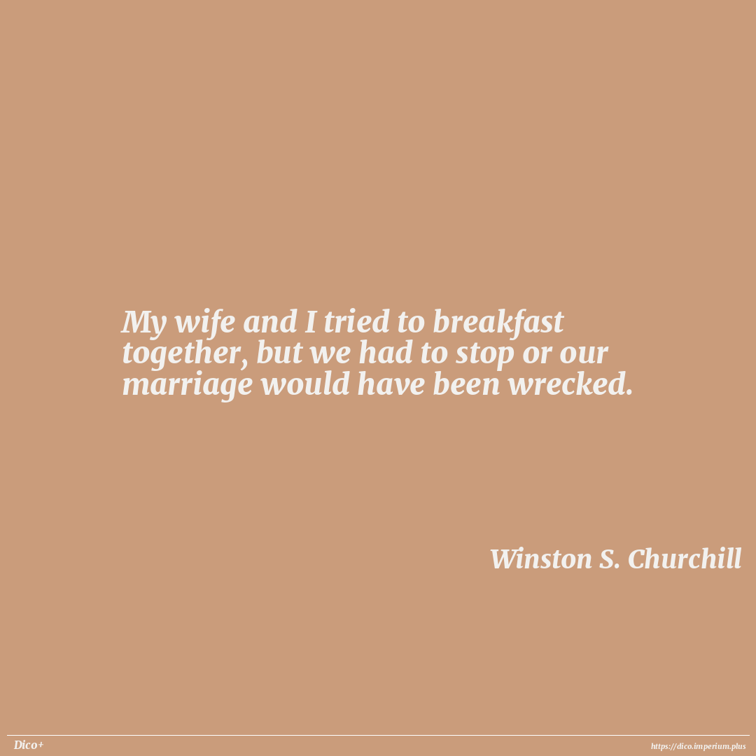 My wife and I tried to breakfast together, but we had to stop or our marriage would have been wrecked.