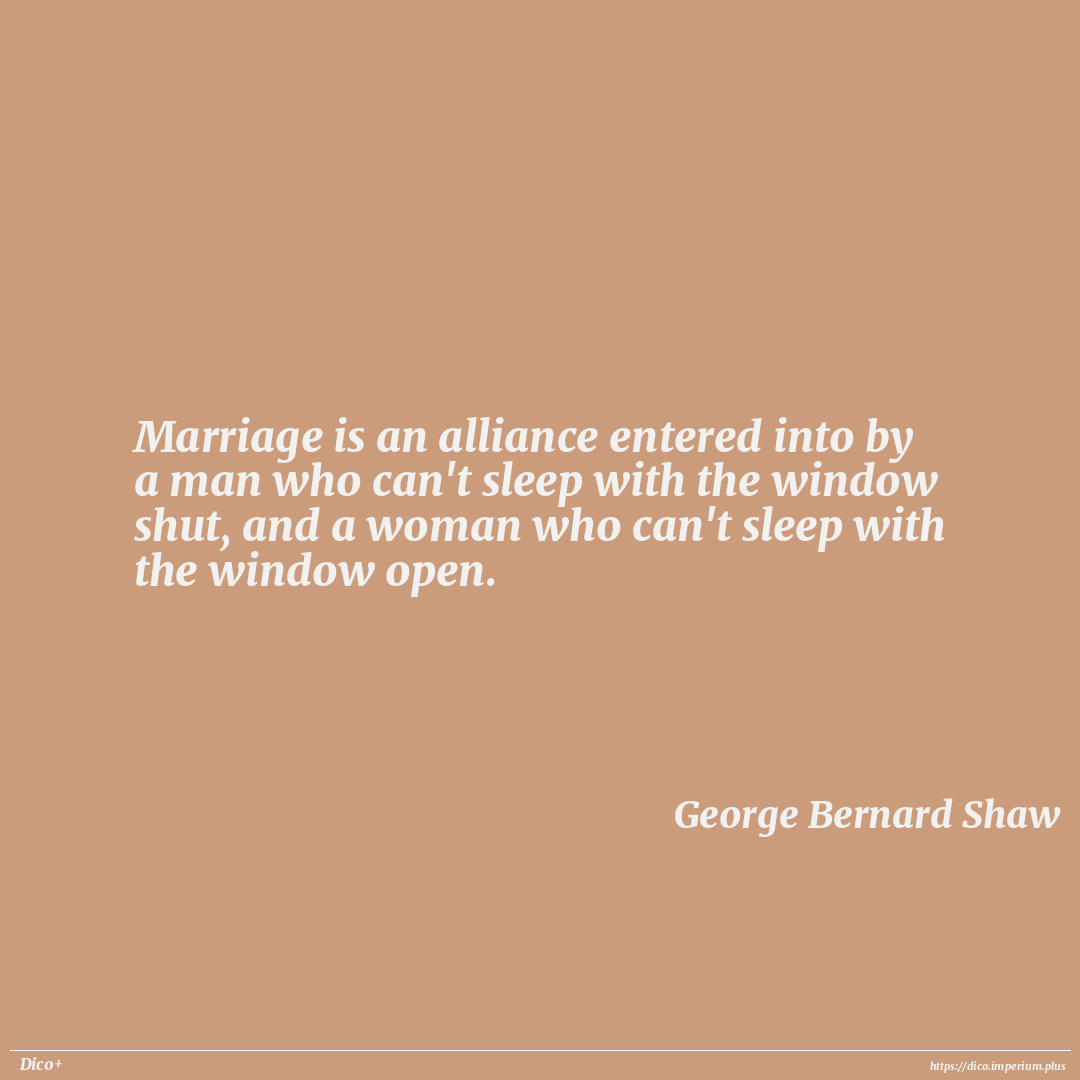Marriage is an alliance entered into by a man who can't sleep with the window shut, and a woman who can't sleep with the window open.