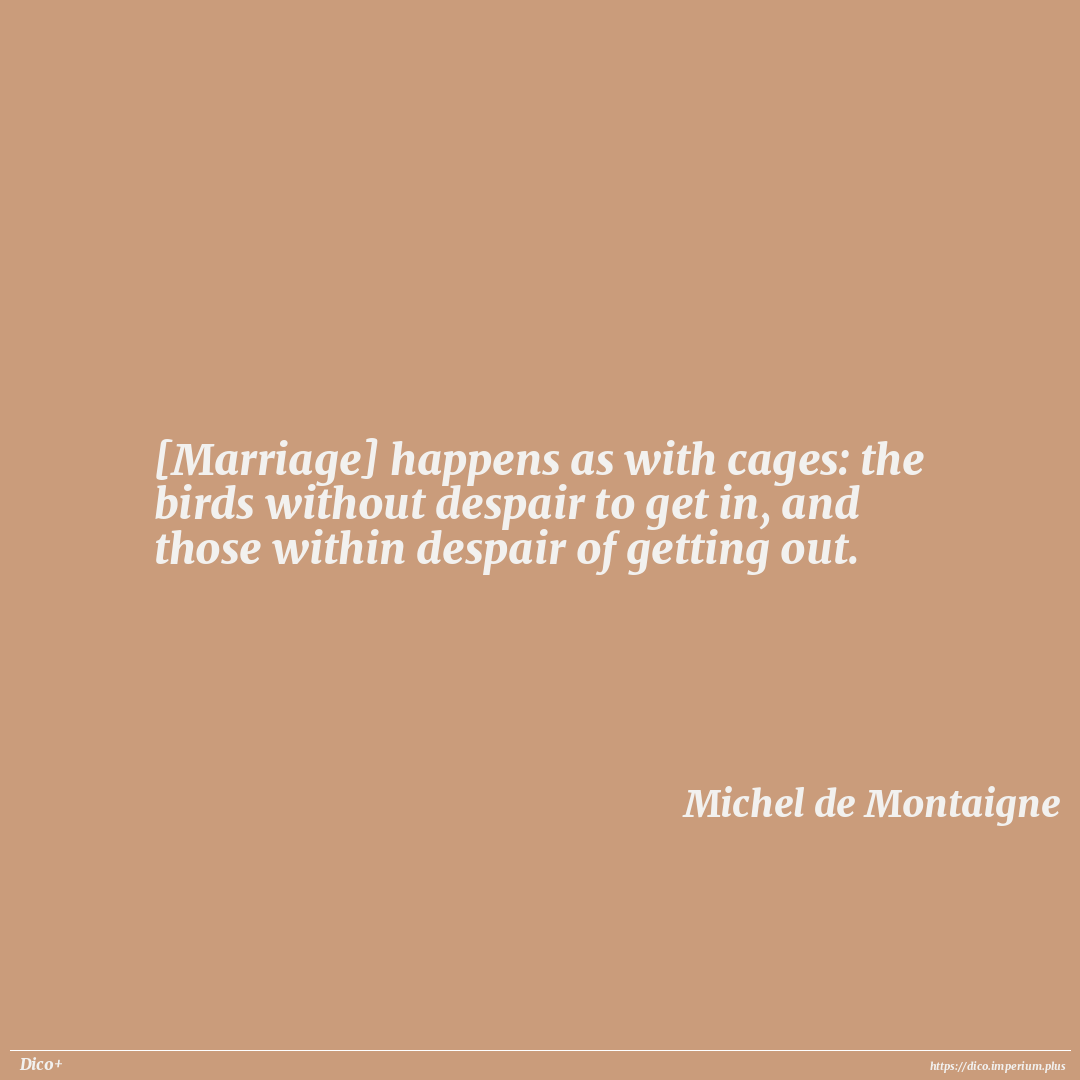 [Marriage] happens as with cages: the birds without despair to get in, and those within despair of getting out.
