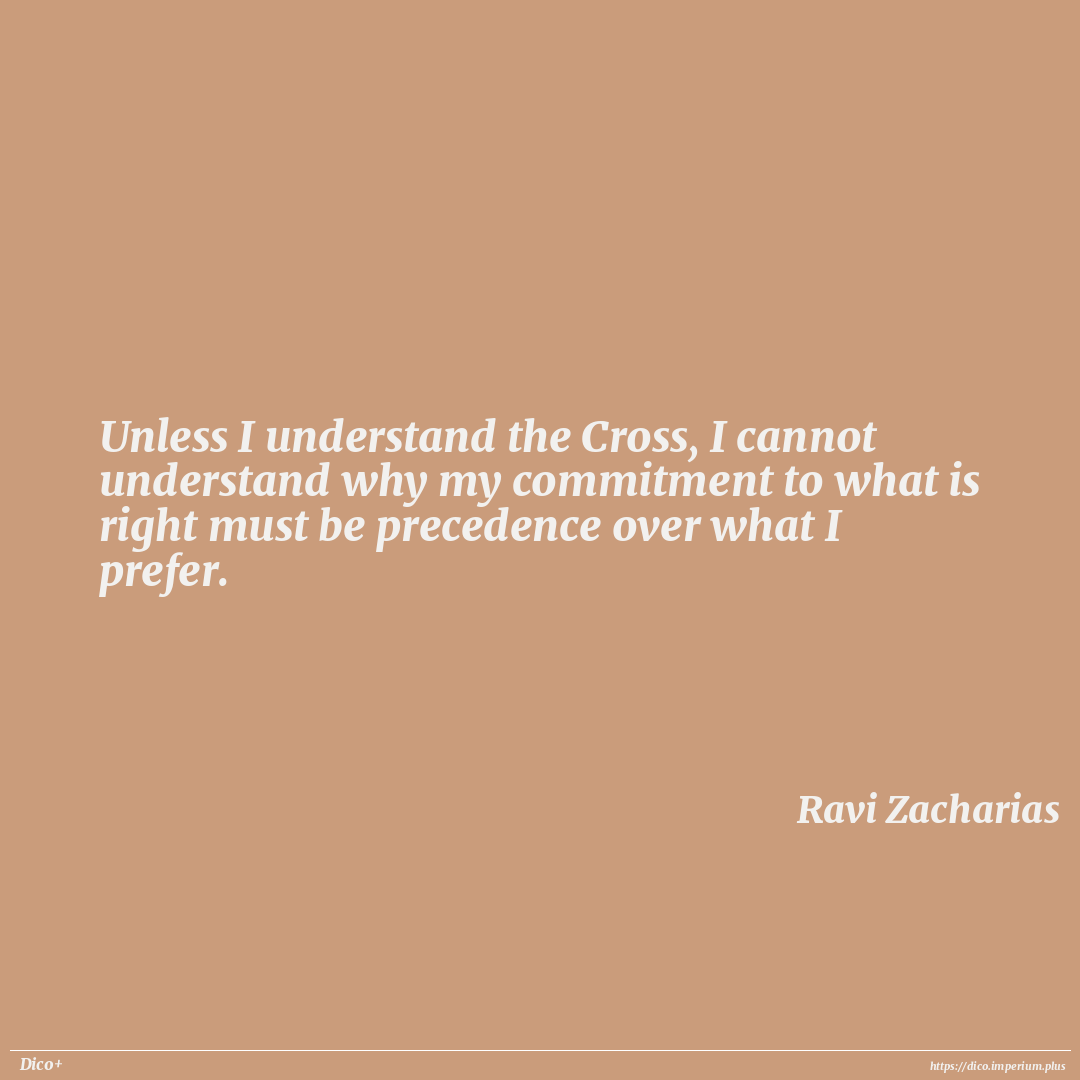 Unless I understand the Cross, I cannot understand why my commitment to what is right must be precedence over what I prefer.
