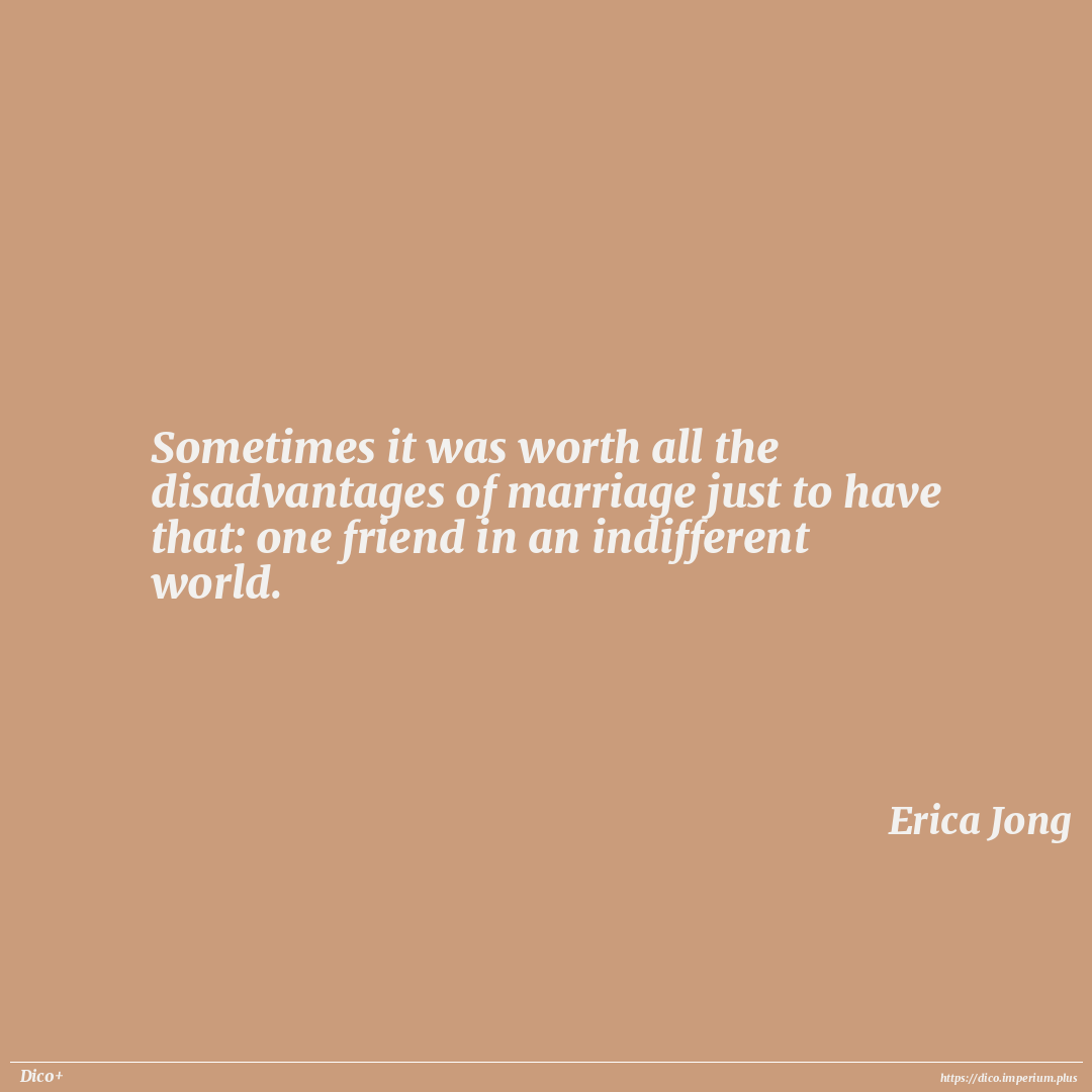 Sometimes it was worth all the disadvantages of marriage just to have that: one friend in an indifferent world.