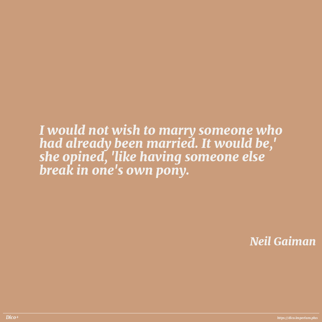 I would not wish to marry someone who had already been married. It would be,' she opined, 'like having someone else break in one's own pony.