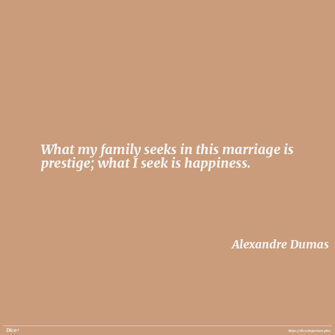 What my family seeks in this marriage is prestige; what I seek is happiness.