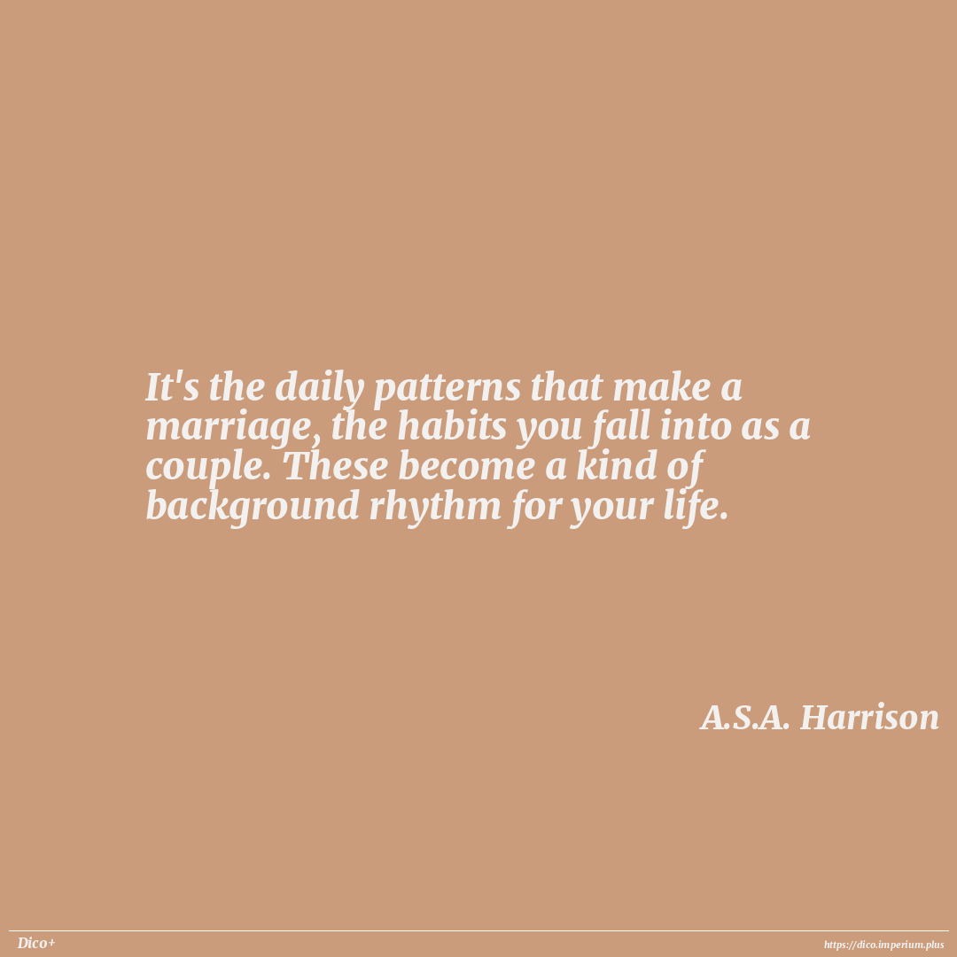 It's the daily patterns that make a marriage, the habits you fall into as a couple. These become a kind of background rhythm for your life.