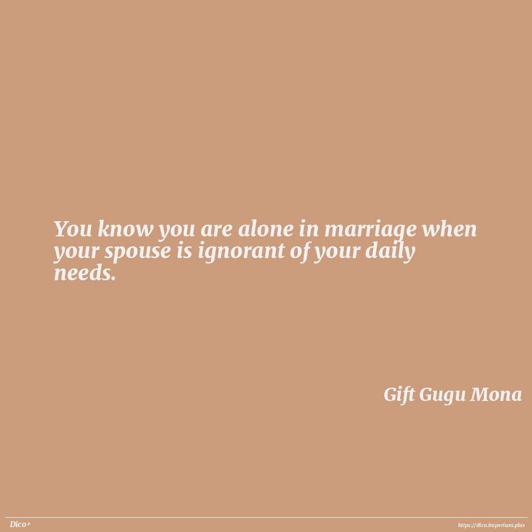 You know you are alone in marriage when your spouse is ignorant of your daily needs.