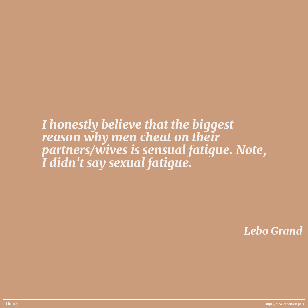 I honestly believe that the biggest reason why men cheat on their partners/wives is sensual fatigue. Note, I didn't say sexual fatigue.