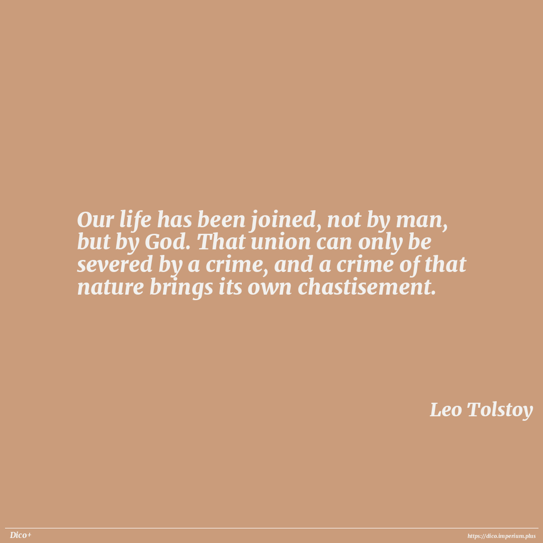 Our life has been joined, not by man, but by God. That union can only be severed by a crime, and a crime of that nature brings its own chastisement.