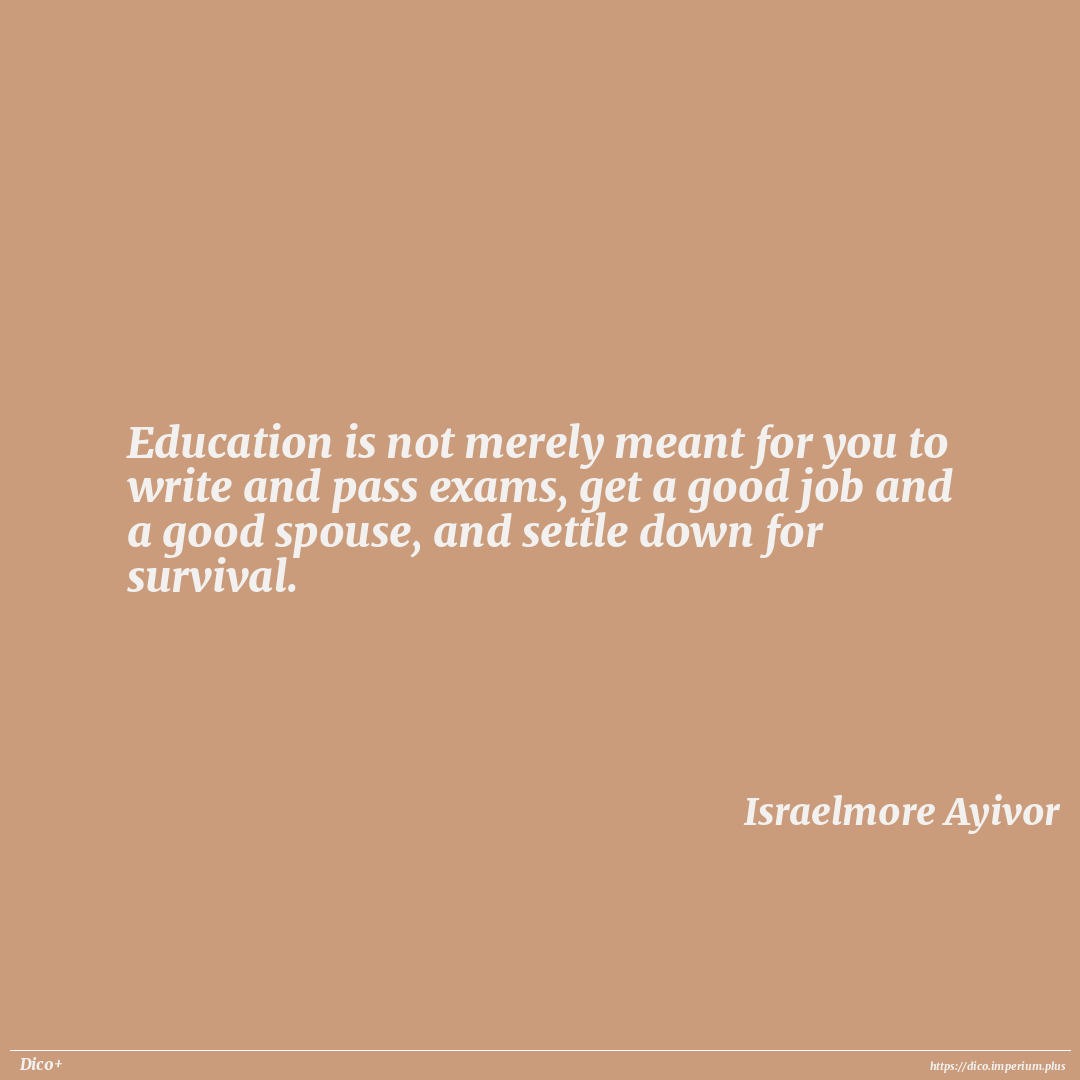 Education is not merely meant for you to write and pass exams, get a good job and a good spouse, and settle down for survival.