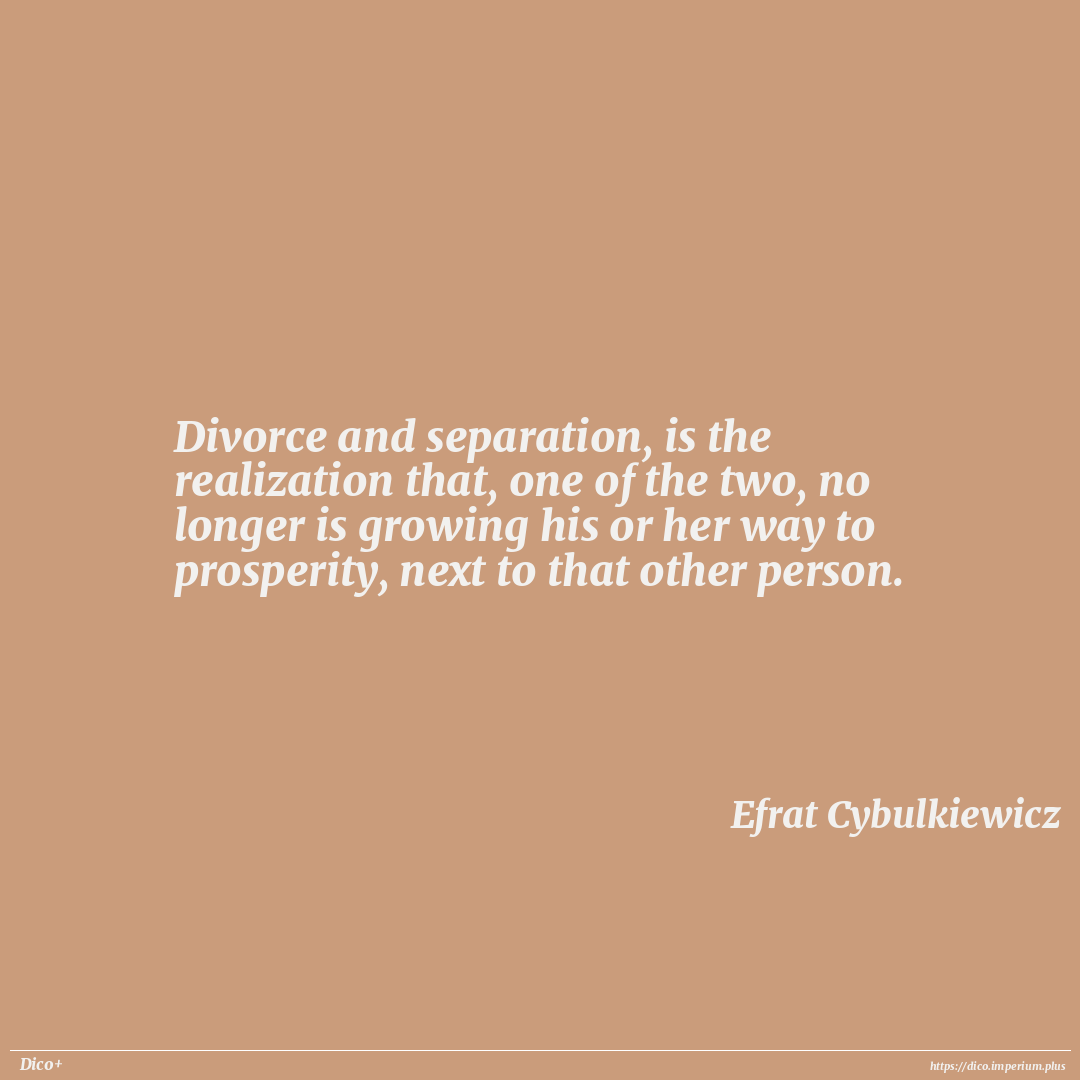 Divorce and separation, is the realization that, one of the two, no longer is growing his or her way to prosperity, next to that other person.