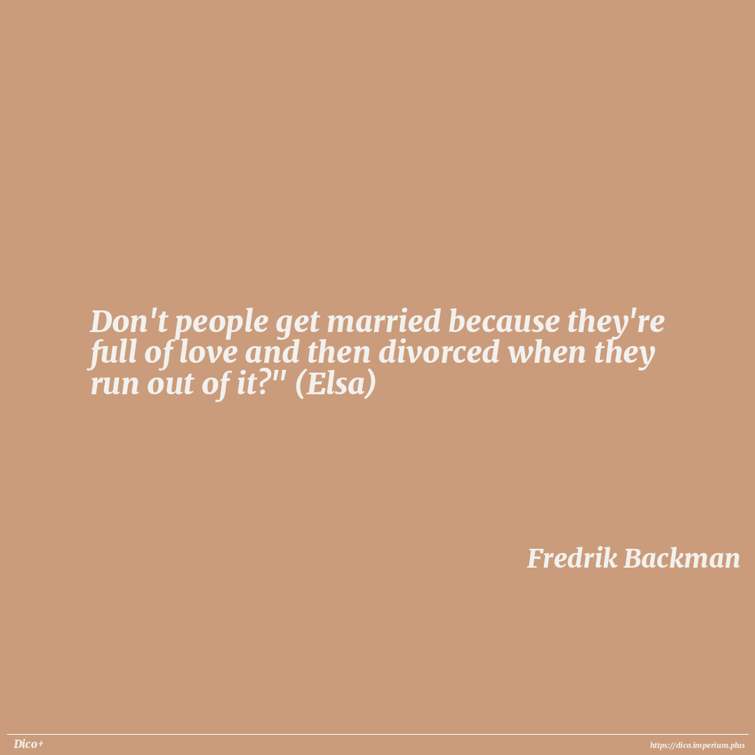 Don't people get married because they're full of love and then divorced when they run out of it?" (Elsa)
