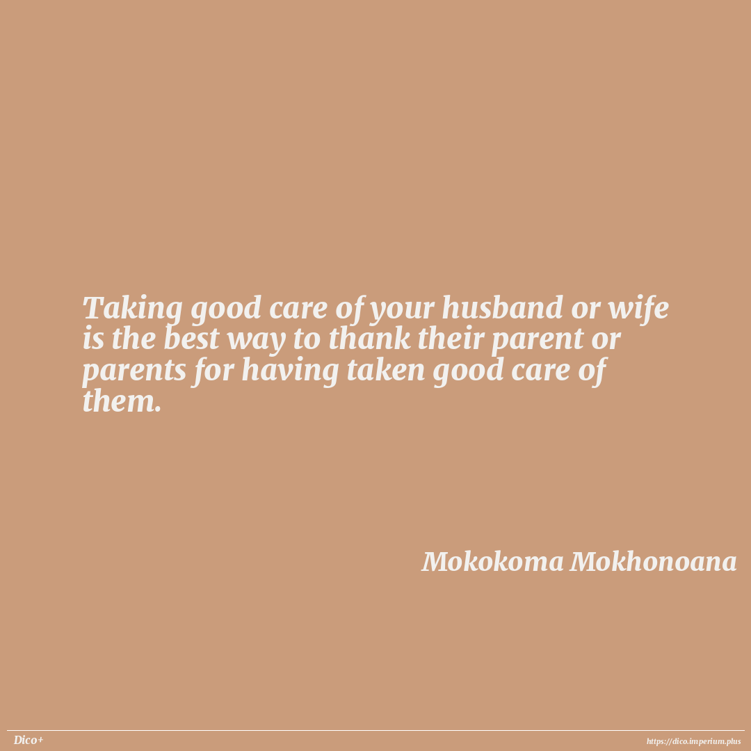 Taking good care of your husband or wife is the best way to thank their parent or parents for having taken good care of them.