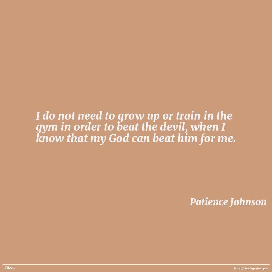 I do not need to grow up or train in the gym in order to beat the devil, when I know that my God can beat him for me.