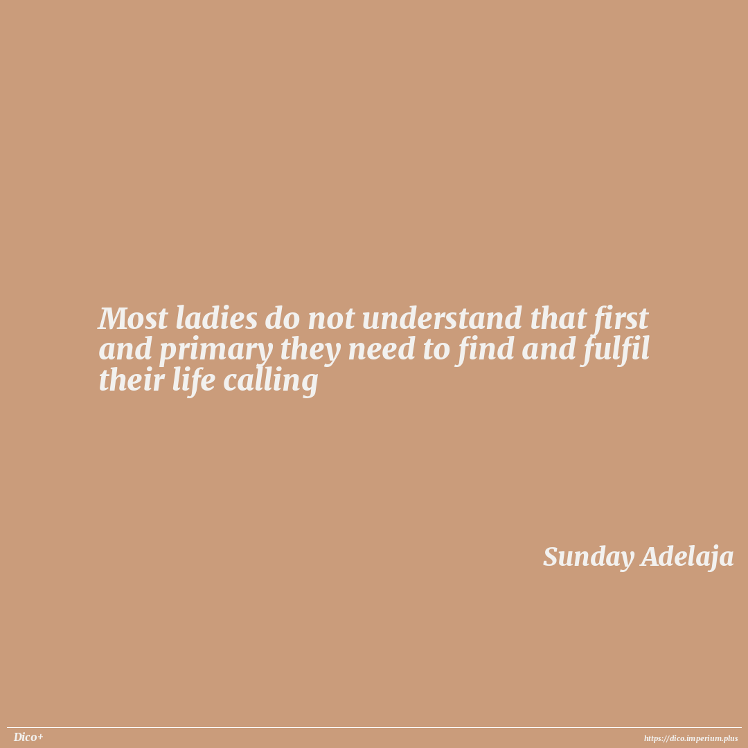 Most ladies do not understand that first and primary they need to find and fulfil their life calling