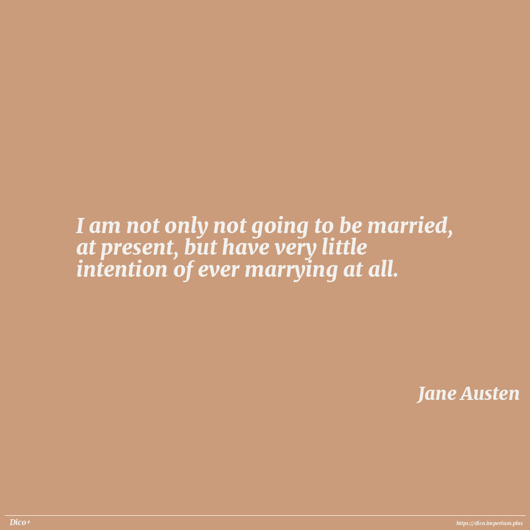 I am not only not going to be married, at present, but have very little intention of ever marrying at all.