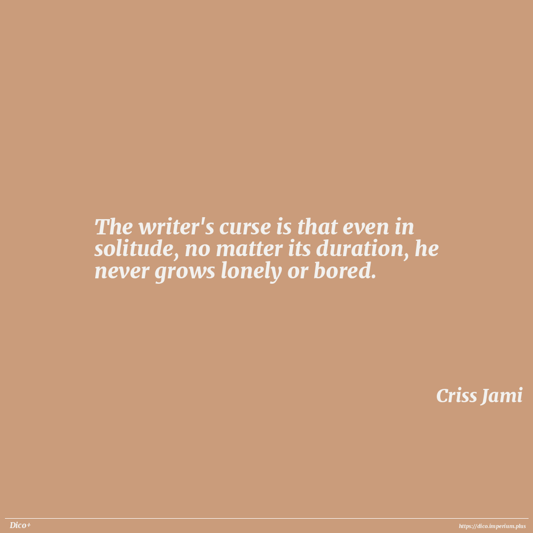 The writer's curse is that even in solitude, no matter its duration, he never grows lonely or bored.
