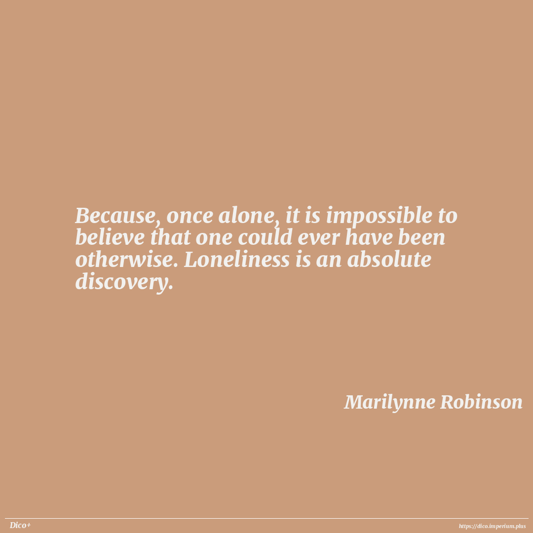 Because, once alone, it is impossible to believe that one could ever have been otherwise. Loneliness is an absolute discovery.