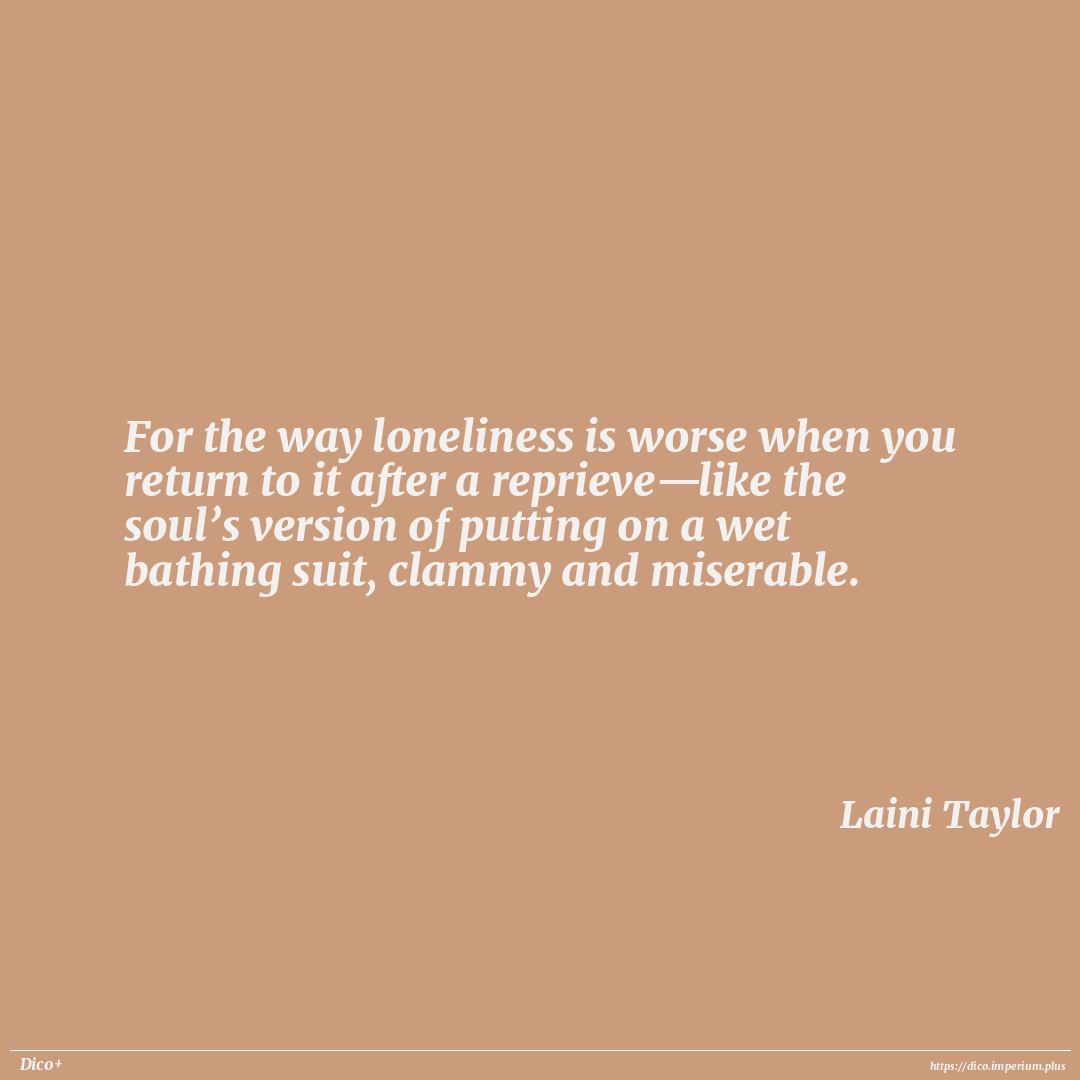 For the way loneliness is worse when you return to it after a reprieve—like the soul’s version of putting on a wet bathing suit, clammy and miserable.