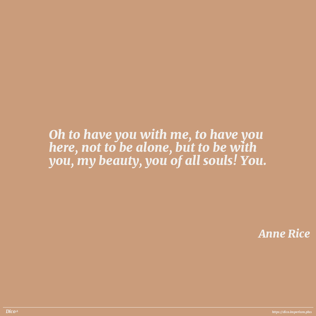 Oh to have you with me, to have you here, not to be alone, but to be with you, my beauty, you of all souls! You.