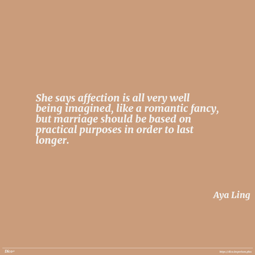 She says affection is all very well being imagined, like a romantic fancy, but marriage should be based on practical purposes in order to last longer.