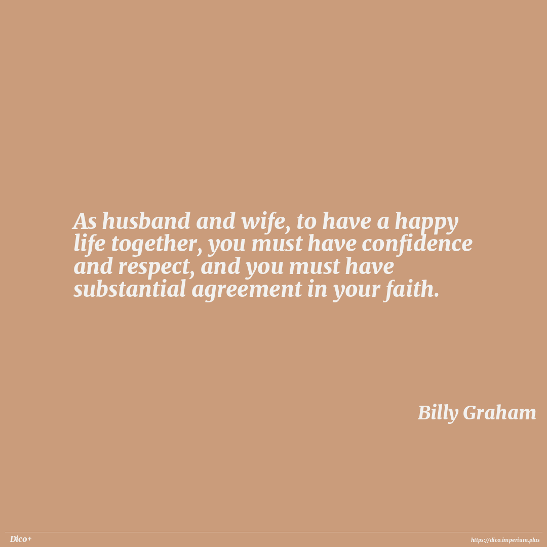 As husband and wife, to have a happy life together, you must have confidence and respect, and you must have substantial agreement in your faith.