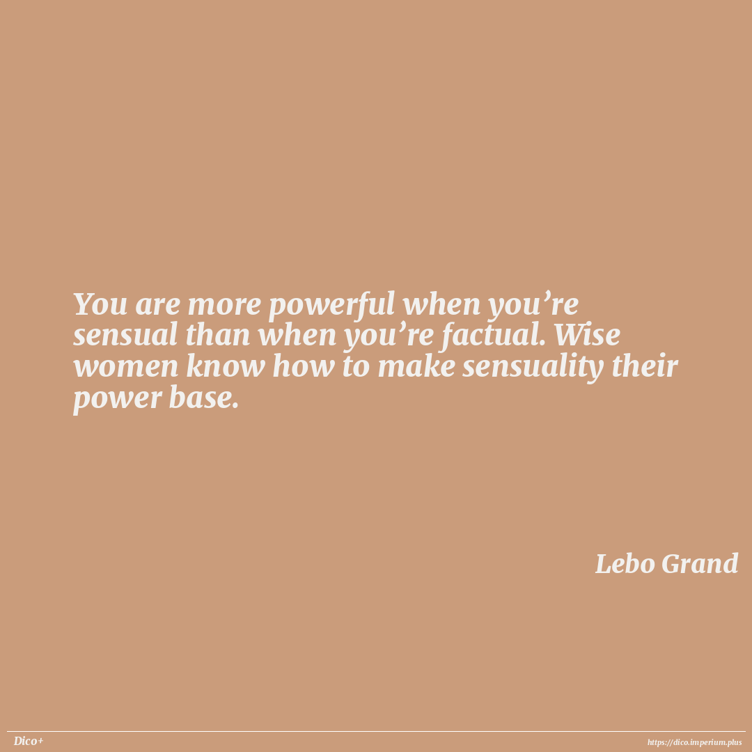 You are more powerful when you’re sensual than when you’re factual. Wise women know how to make sensuality their power base.