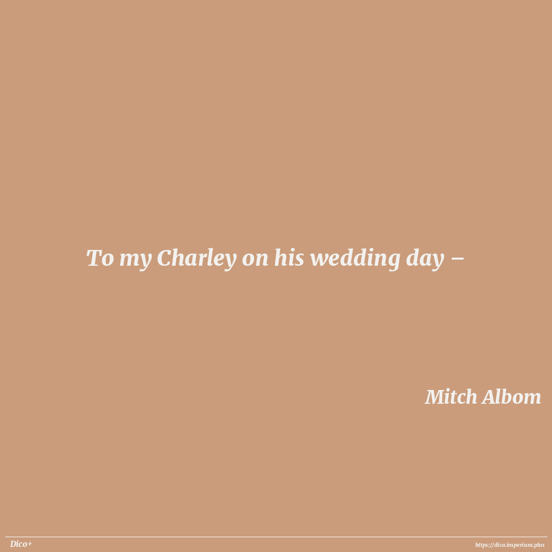 To my Charley on his wedding day –