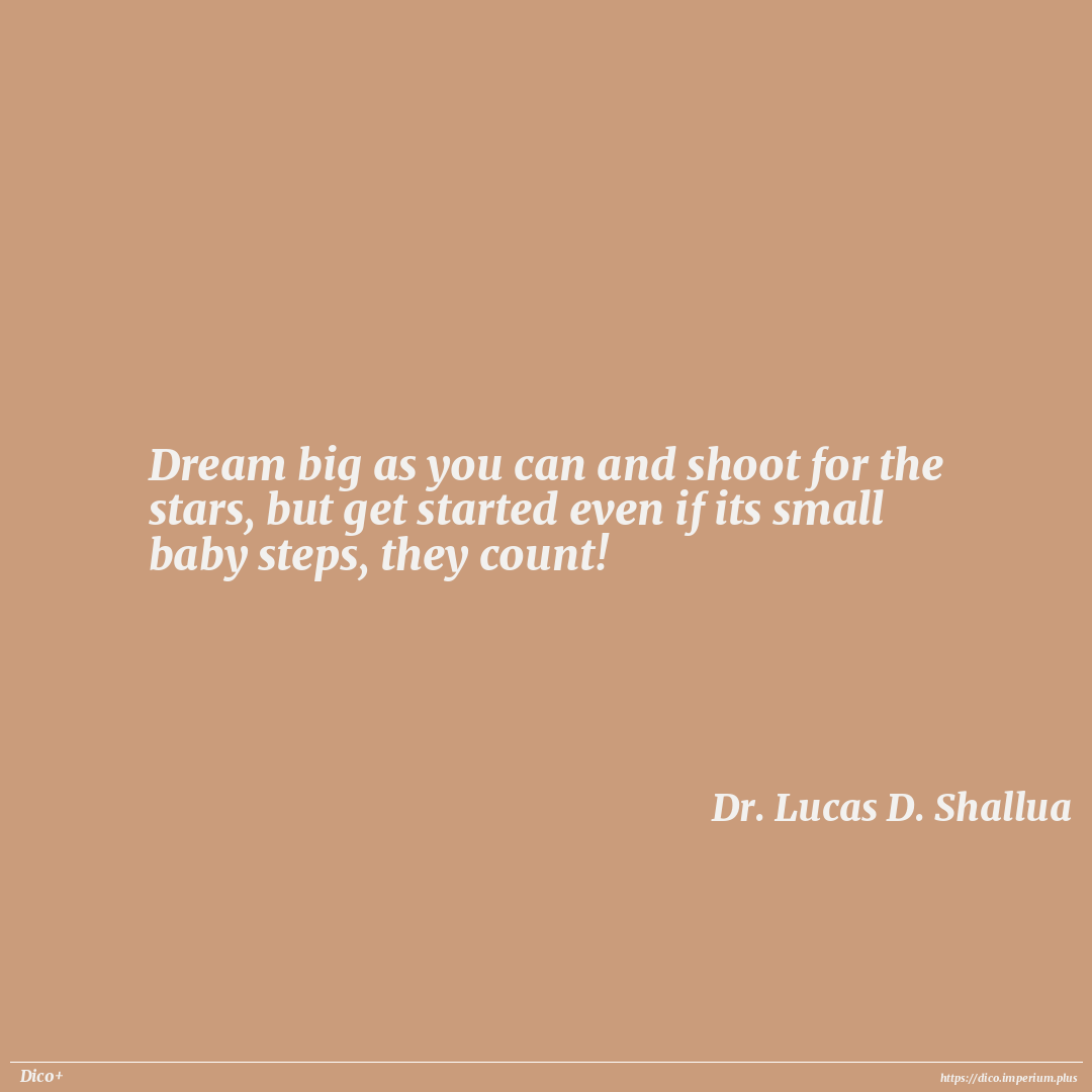 Dream big as you can and shoot for the stars, but get started even if its small baby steps, they count!