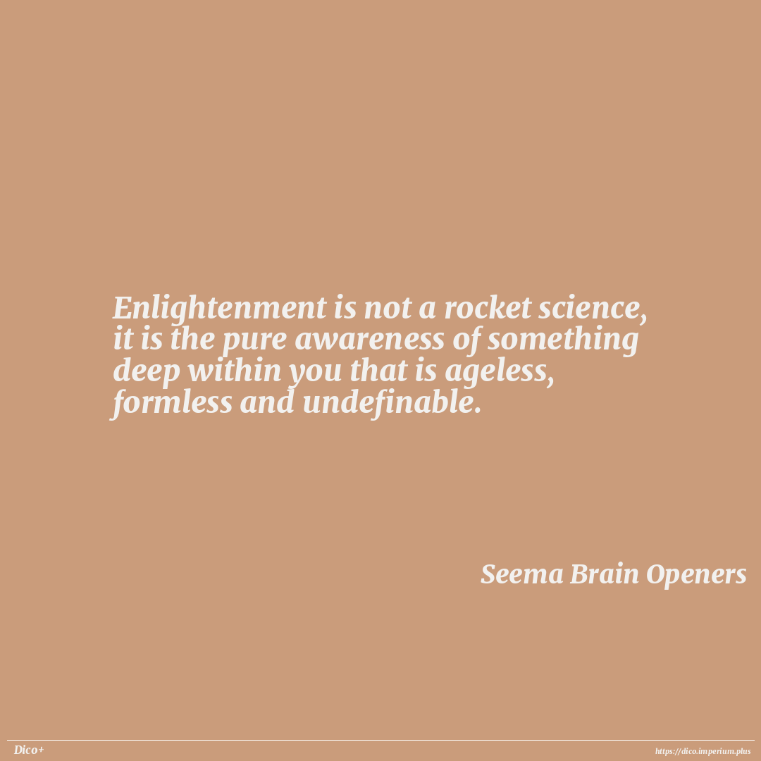 Enlightenment is not a rocket science, it is the pure awareness of something deep within you that is ageless, formless and undefinable.