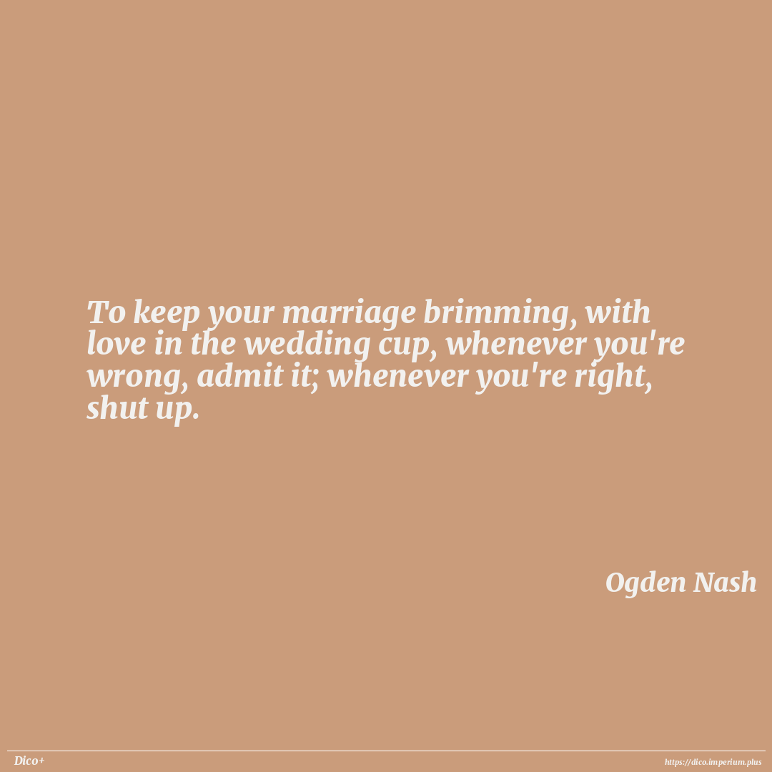 To keep your marriage brimming, with love in the wedding cup, whenever you're wrong, admit it; whenever you're right, shut up.