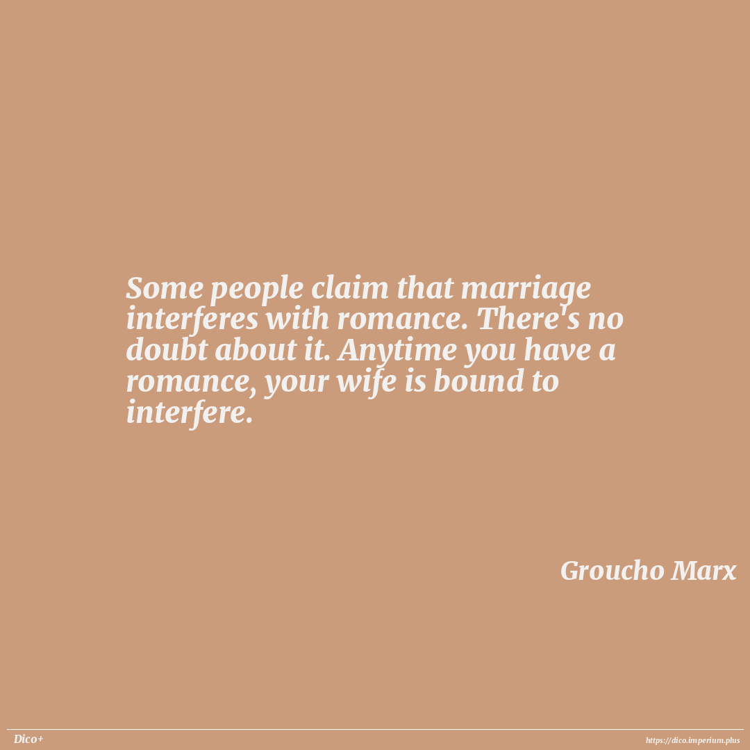 Some people claim that marriage interferes with romance. There's no doubt about it. Anytime you have a romance, your wife is bound to interfere.