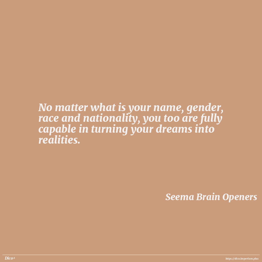 No matter what is your name, gender, race and nationality, you too are fully capable in turning your dreams into realities.