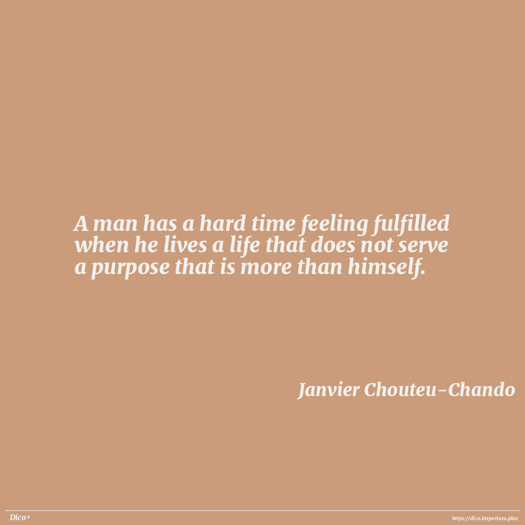 A man has a hard time feeling fulfilled when he lives a life that does not serve a purpose that is more than himself.