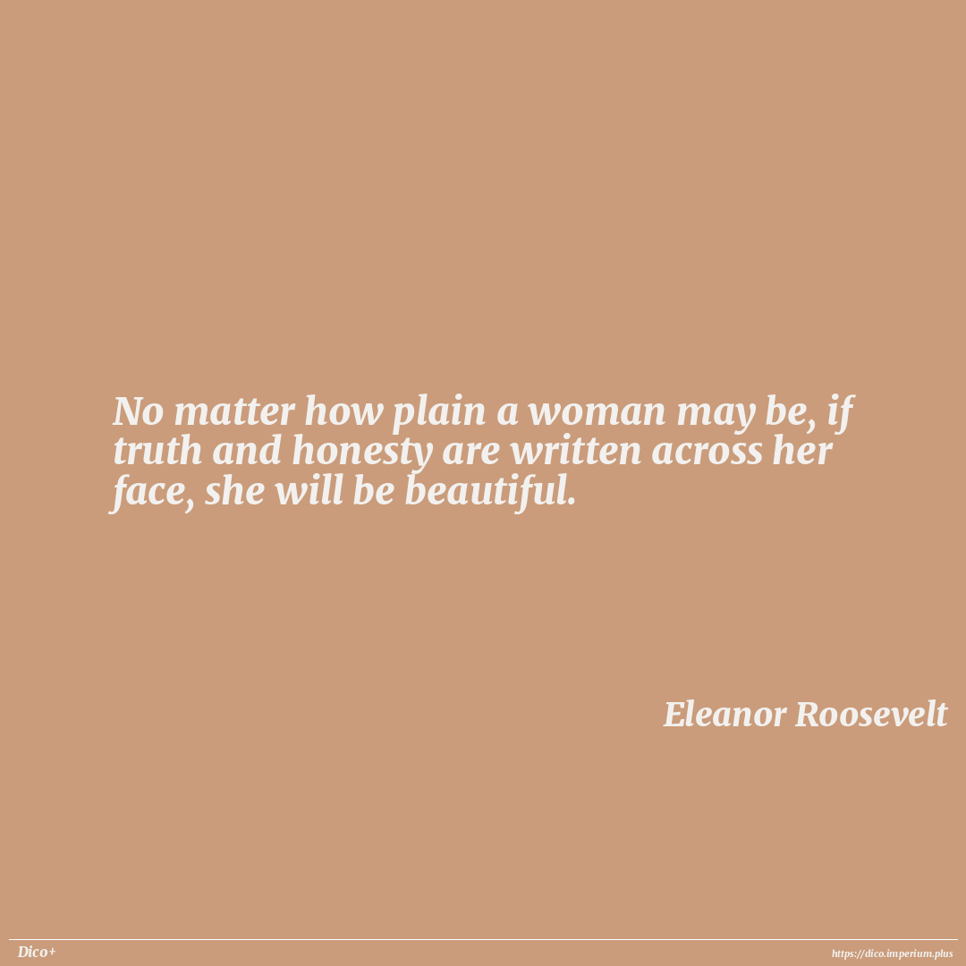 No matter how plain a woman may be, if truth and honesty are written across her face, she will be beautiful.