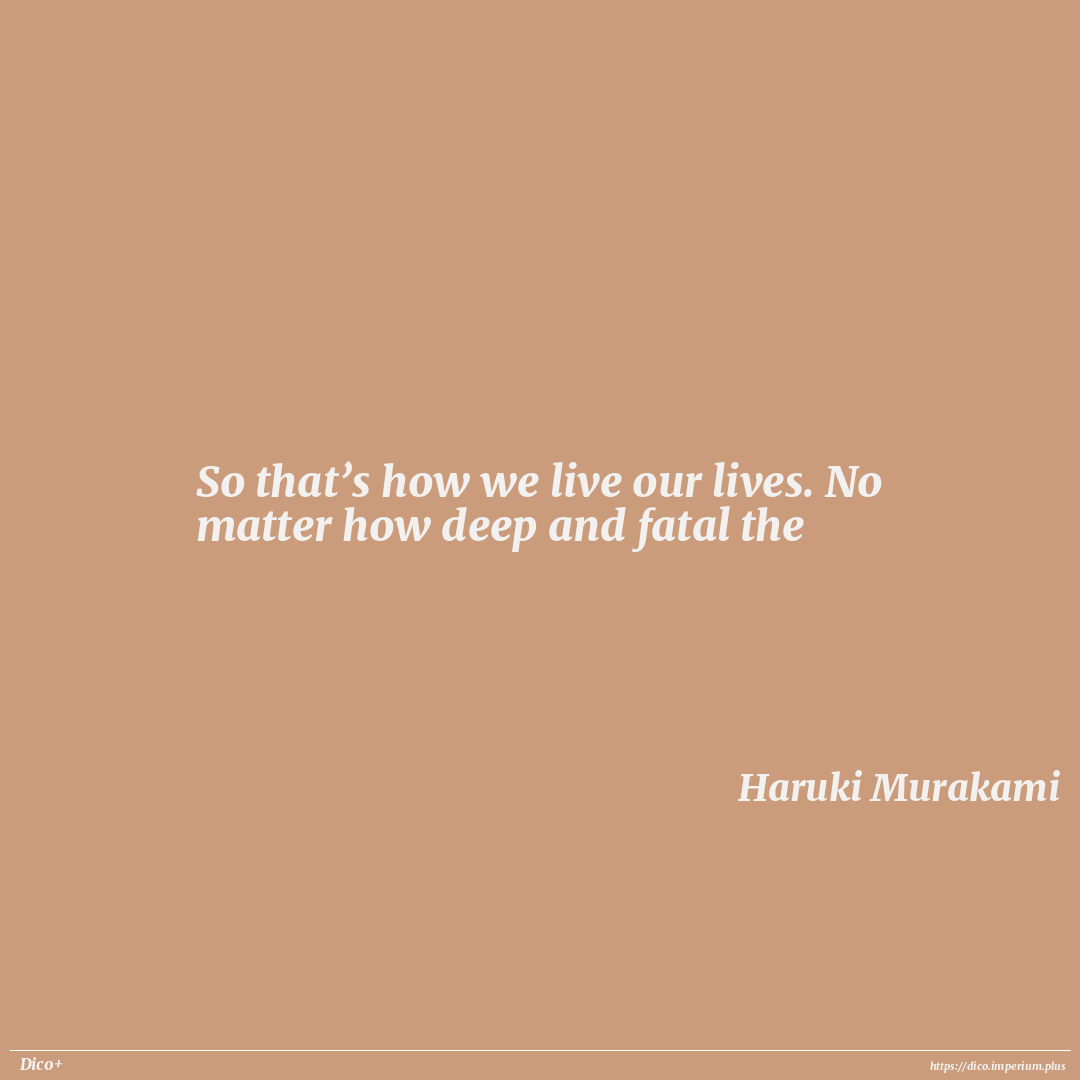 So that’s how we live our lives. No matter how deep and fatal the