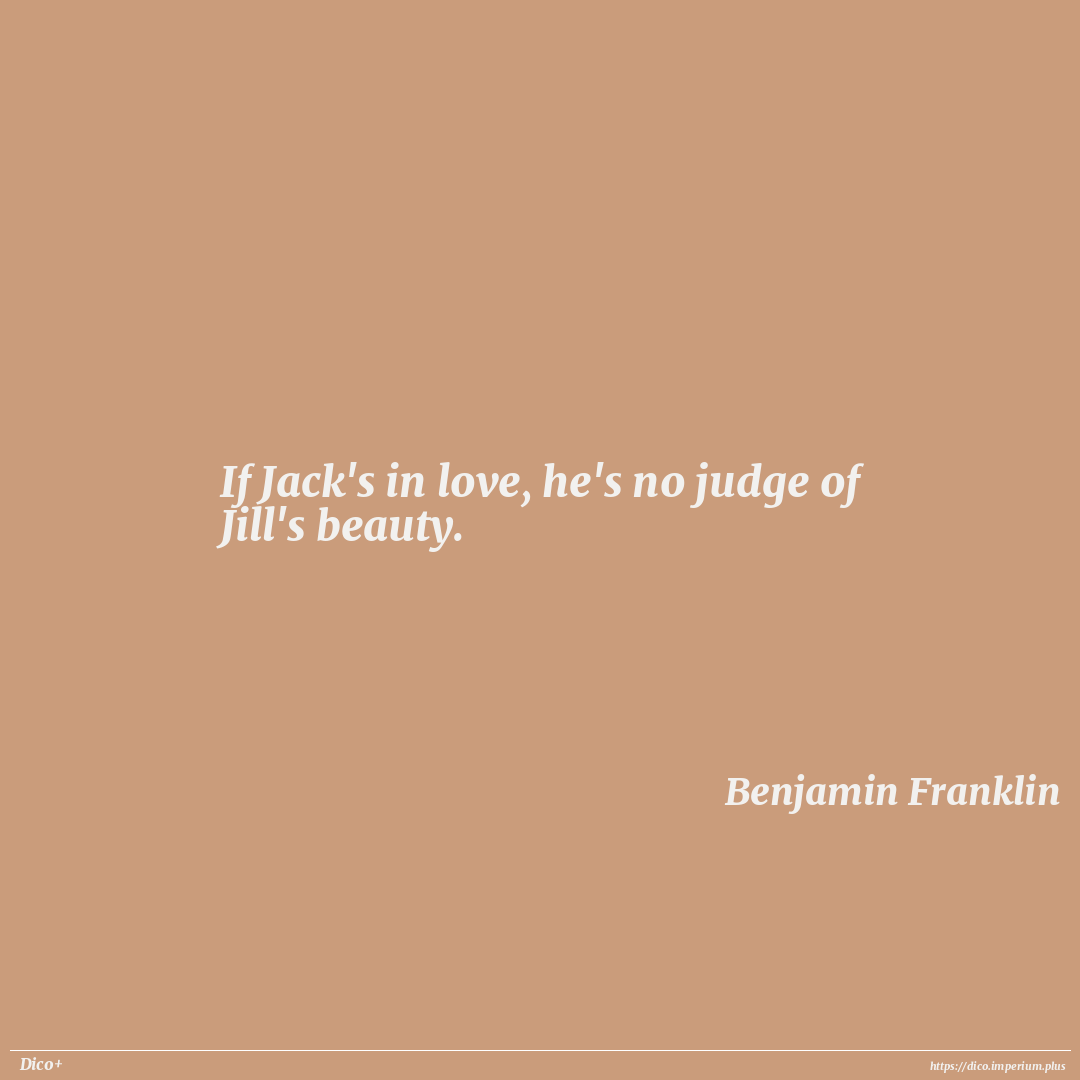 If Jack's in love, he's no judge of Jill's beauty.