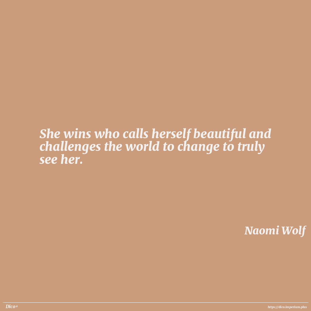 She wins who calls herself beautiful and challenges the world to change to truly see her.