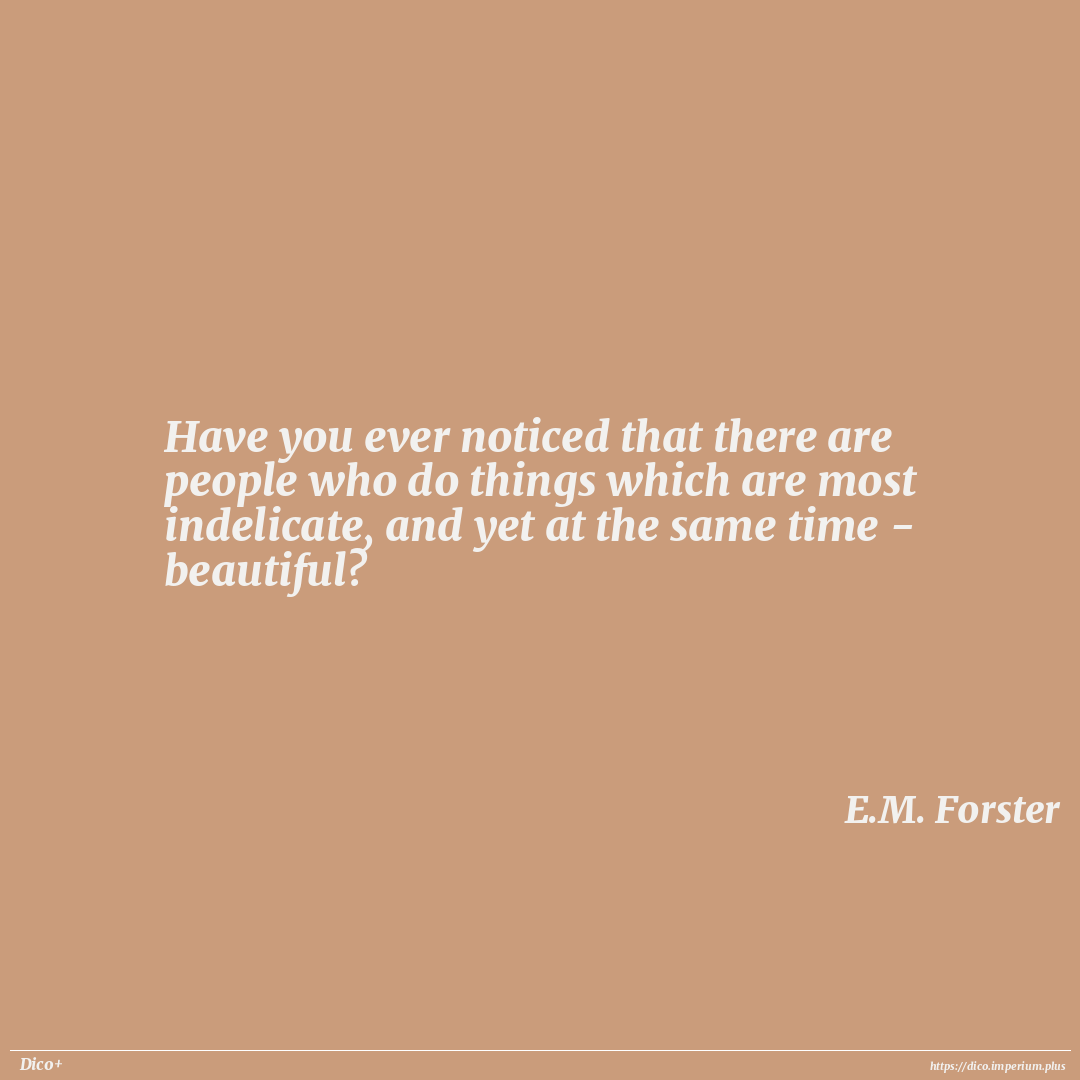 Have you ever noticed that there are people who do things which are most indelicate, and yet at the same time - beautiful?
