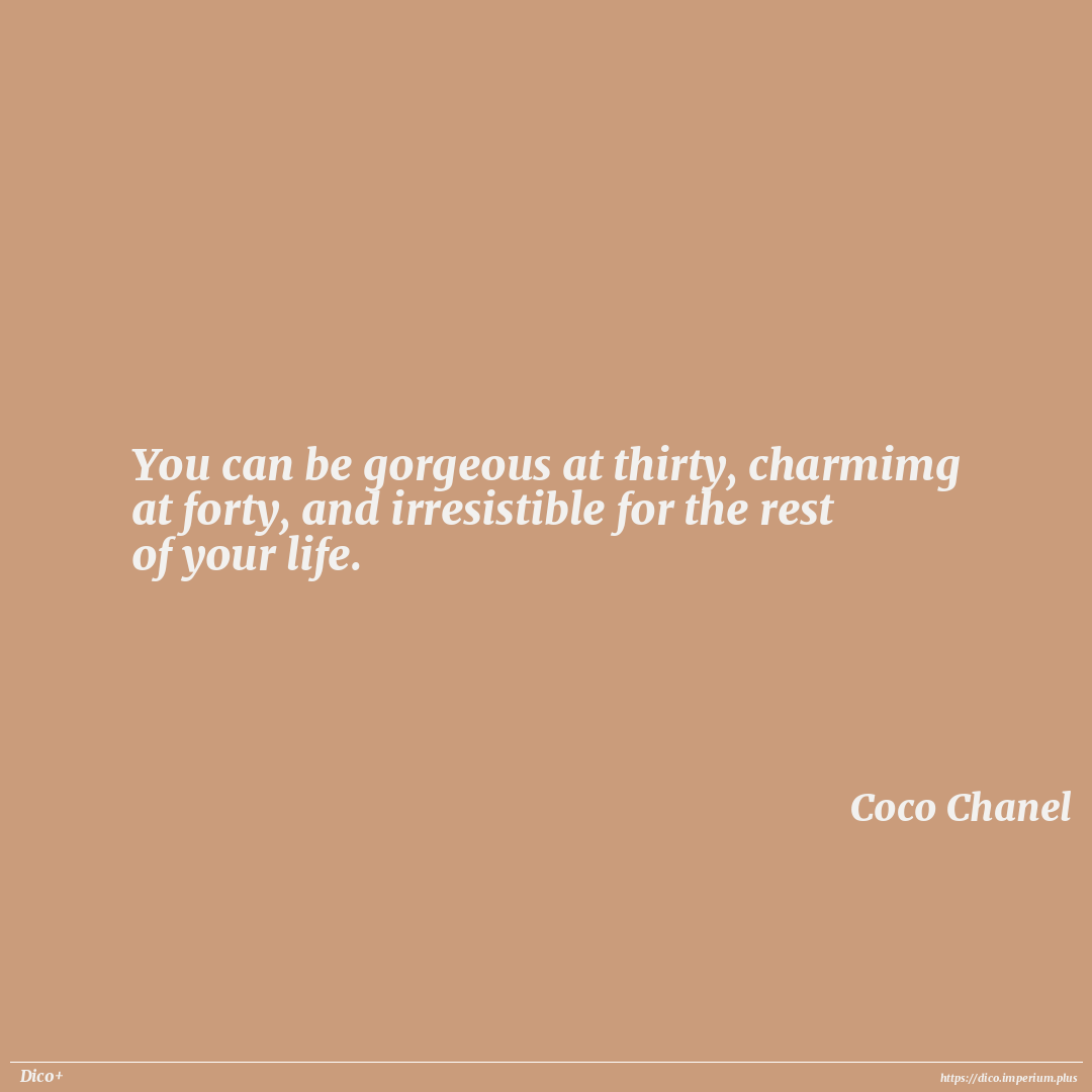 You can be gorgeous at thirty, charmimg at forty, and irresistible for the rest of your life.
