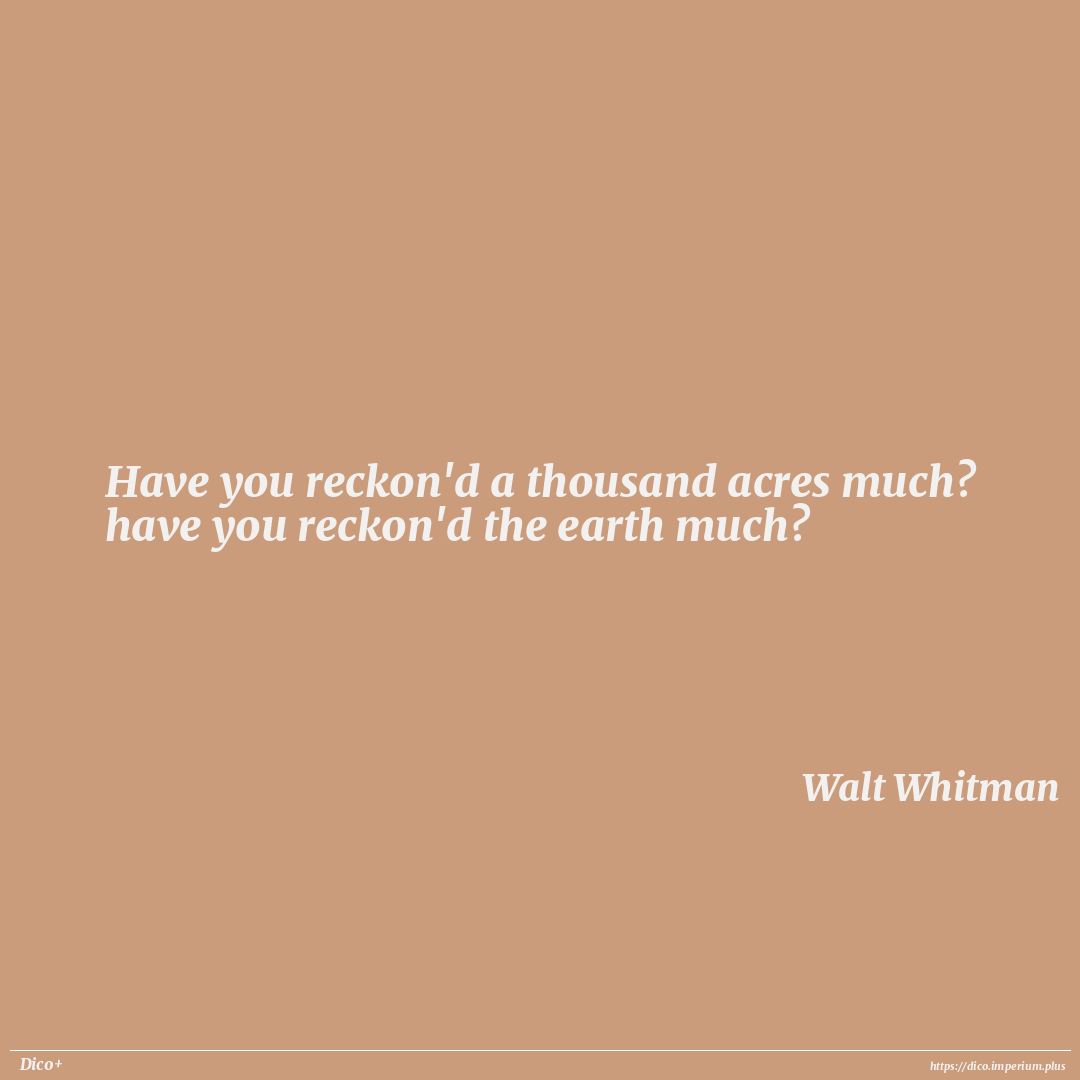 Have you reckon'd a thousand acres much? have you reckon'd the earth much?