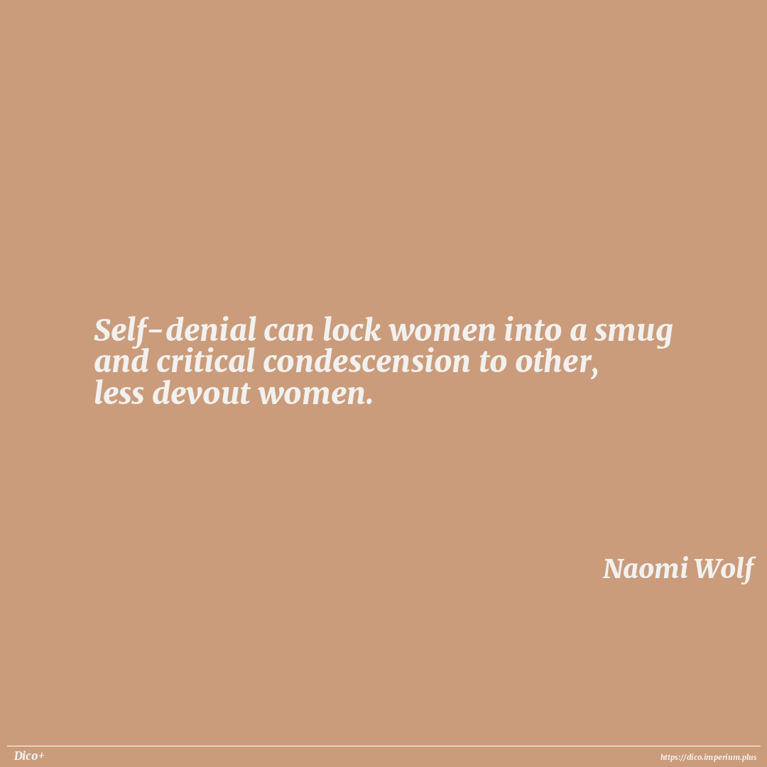 Self-denial can lock women into a smug and critical condescension to other, less devout women.
